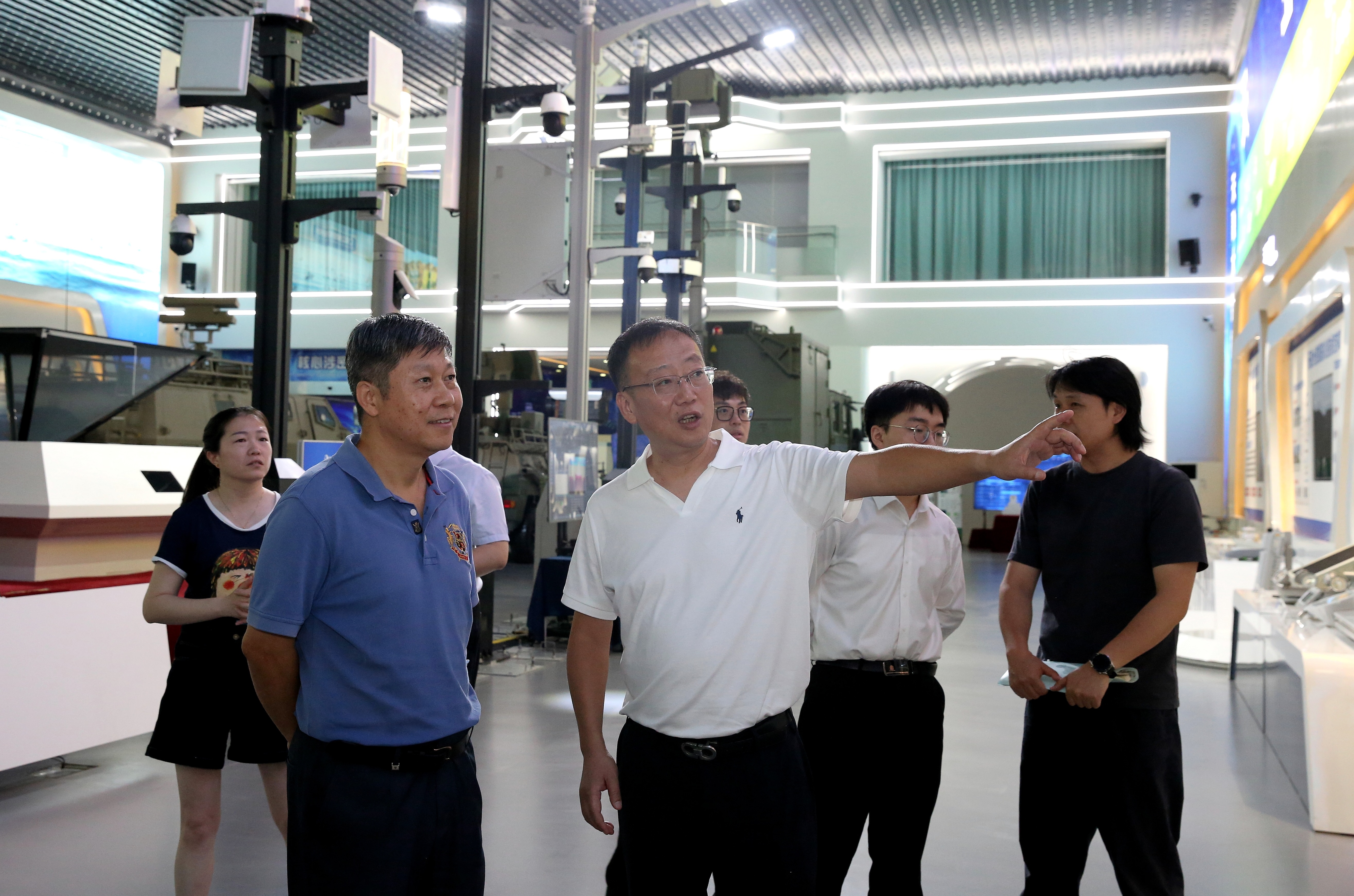 参观展厅时,段永详细介绍了公司军品业务、通讯器件、新材料、海洋智能装备等市场情况。座谈会上,副总经理刘金虎介绍了天和防务二期5G通讯产业园、天融大数据(西安)算力中心项目建设进展。就双方在IDC领域的合作进行了深入探讨。