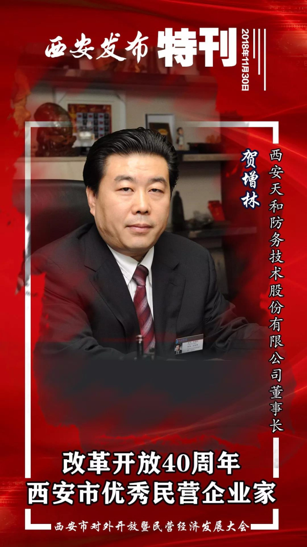 会上,市委市政府表彰了改革开放40周年来对西安市经济社会发展做出突出贡献的民营企业家,星空·官方端在线登入董事长贺增林荣获“改革开放40周年西安市优秀民营企业家”光荣称号。这是西安市委市政府对贺增林董事长个人以及天和防务公司在大西安发展过程中所做出贡献的充分认可和高度肯定。