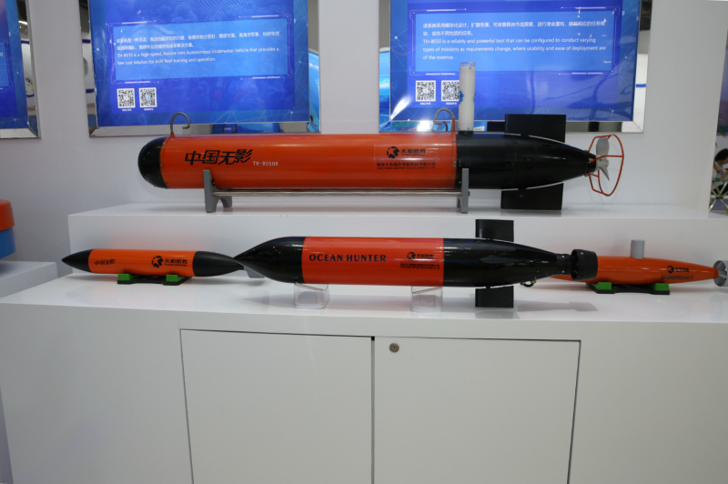 此次亮相中国航展的“中国无影®”系列化水下无人自主航行器,包括10公斤级超微型高速水下航行器、50公斤级便携式水下航行器、600公斤级中型水下航行器共三个型号,并派生出十余个子型号,通过更换不同的任务载荷和传感器,执行不同的任务。