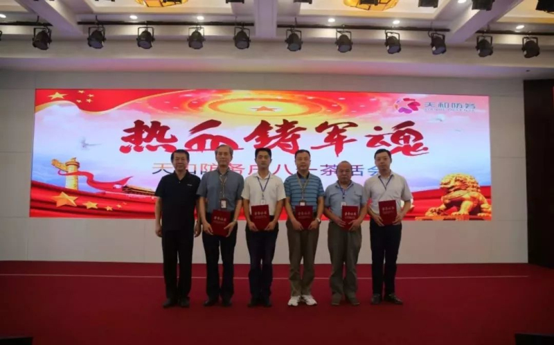 2018年8月1日下午,天和防务举办“传承八一精神,永葆军人本色”为主题的茶话会,庆祝中国人民解放军建军91周年。天和防务董事长贺增林出席茶话会并发表重要讲话。陆军西安军代局驻华县地区军代室领导,陕西省国生军民融合企业商会领导,及公司高管,天和党总支的委员、支部书记,天和工会委员,还有在公司工作的复转军人代表参加茶话会。