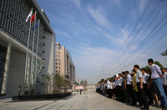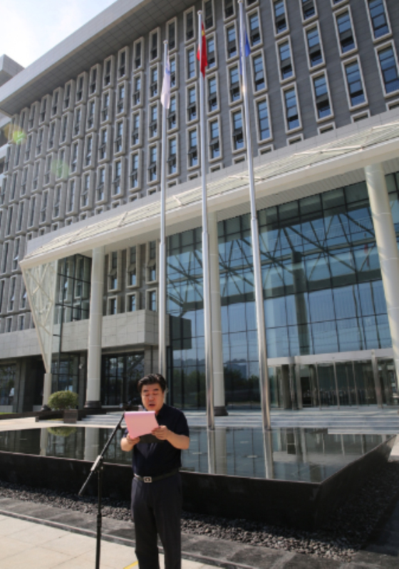 人力资源部的付美皓作为员工代表发言。她说,面对冉冉升起的五星红旗,作为中华儿女,我们无比骄傲;作为天和的员工,我们无比自豪。升国旗、唱国歌,更加激起了我们热爱祖国、奉献社会的满腔豪情,更增添了我们要建设天和、奉献天和的无穷力量。